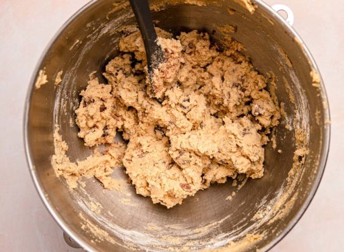 • Using a separate bowl, combine the almond flour, pea protein, hemp protein, Stevia, coconut sugar, whey protein, baking soda and kosher salt. Slowly add the dry ingredients into the wet and mix together until just combined. Don’t over mix.